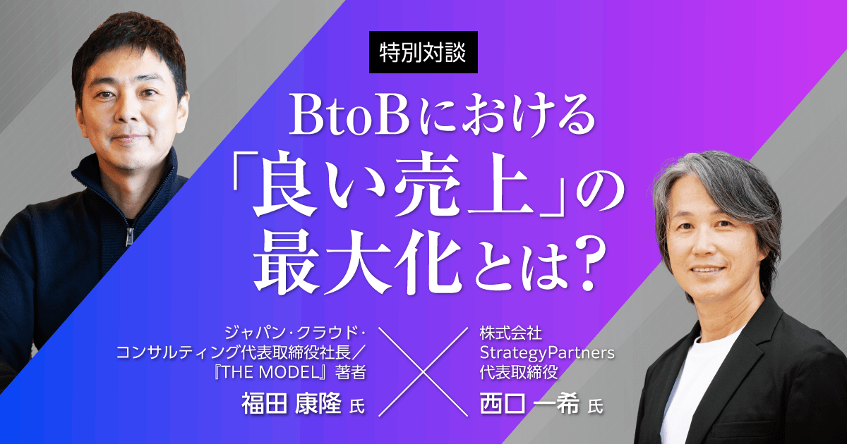 本記事は西口一希氏の新刊『良い売上、悪い売上 「利益」を最大化し持続させるマーケティングの根幹』の刊行記念対談です。福田康隆氏には、BtoB領域を扱う第6章を特別監修いただいています。