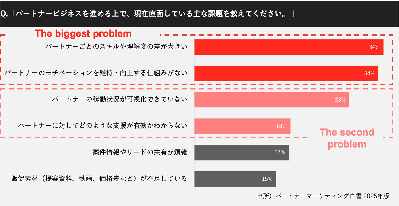 パートナービジネスの課題は「スキルやモチベーションのばらつき」が最多