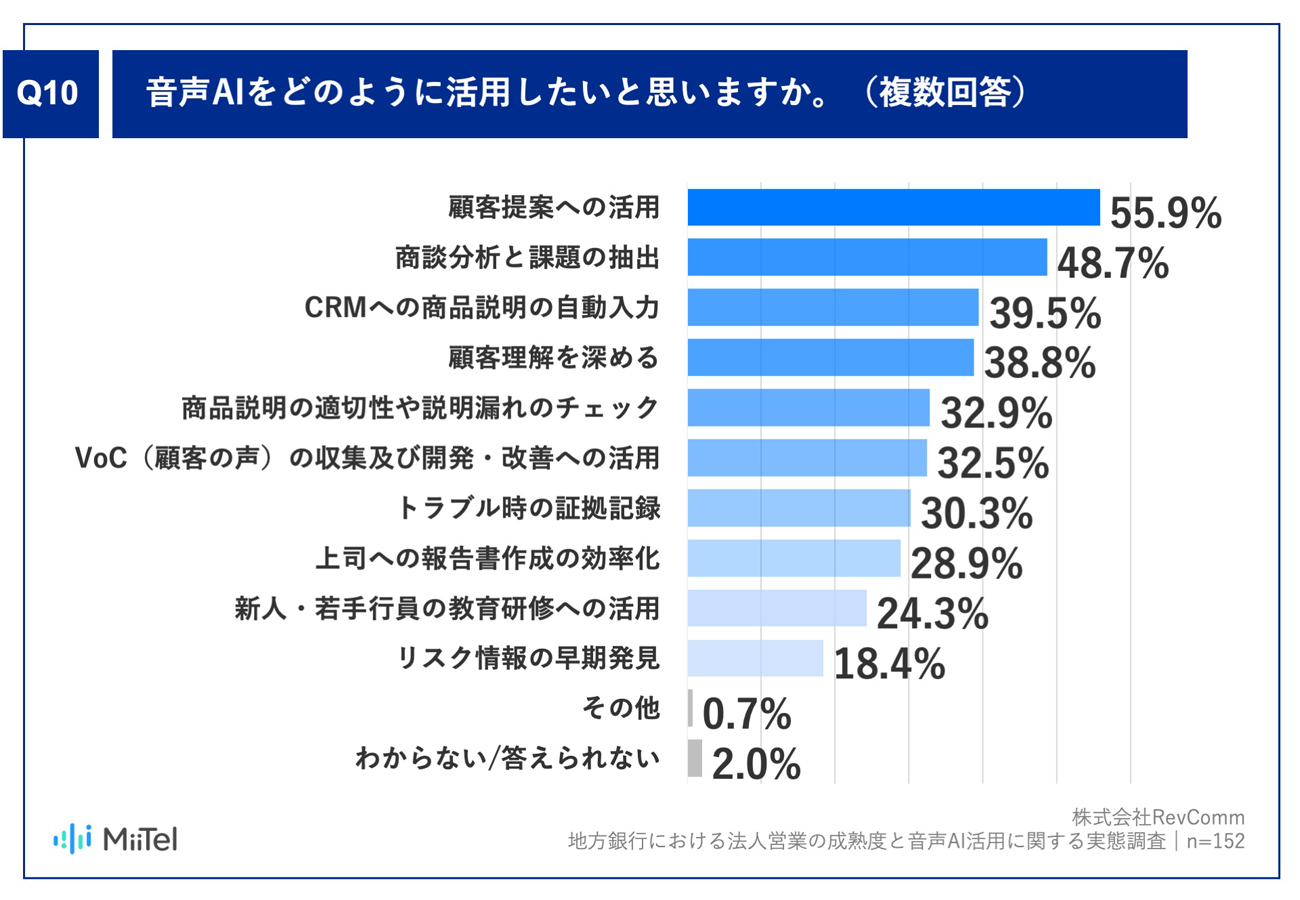 音声AIの活用方法、「顧客提案への活用」や「商談分析と課題の抽出」が上位
