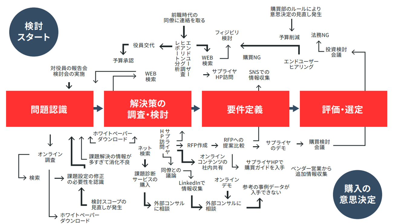 しかし、さまざまな要素が絡み合う中でも「この段階ではこれを求めて、こういう活動をする」という傾向は確実に存在する。顧客ごとに情報を集める中でそのパターンが見えてきたとき、初めて「誰にどのようにアプローチをすべきか」という問いが立てられるのだ。
