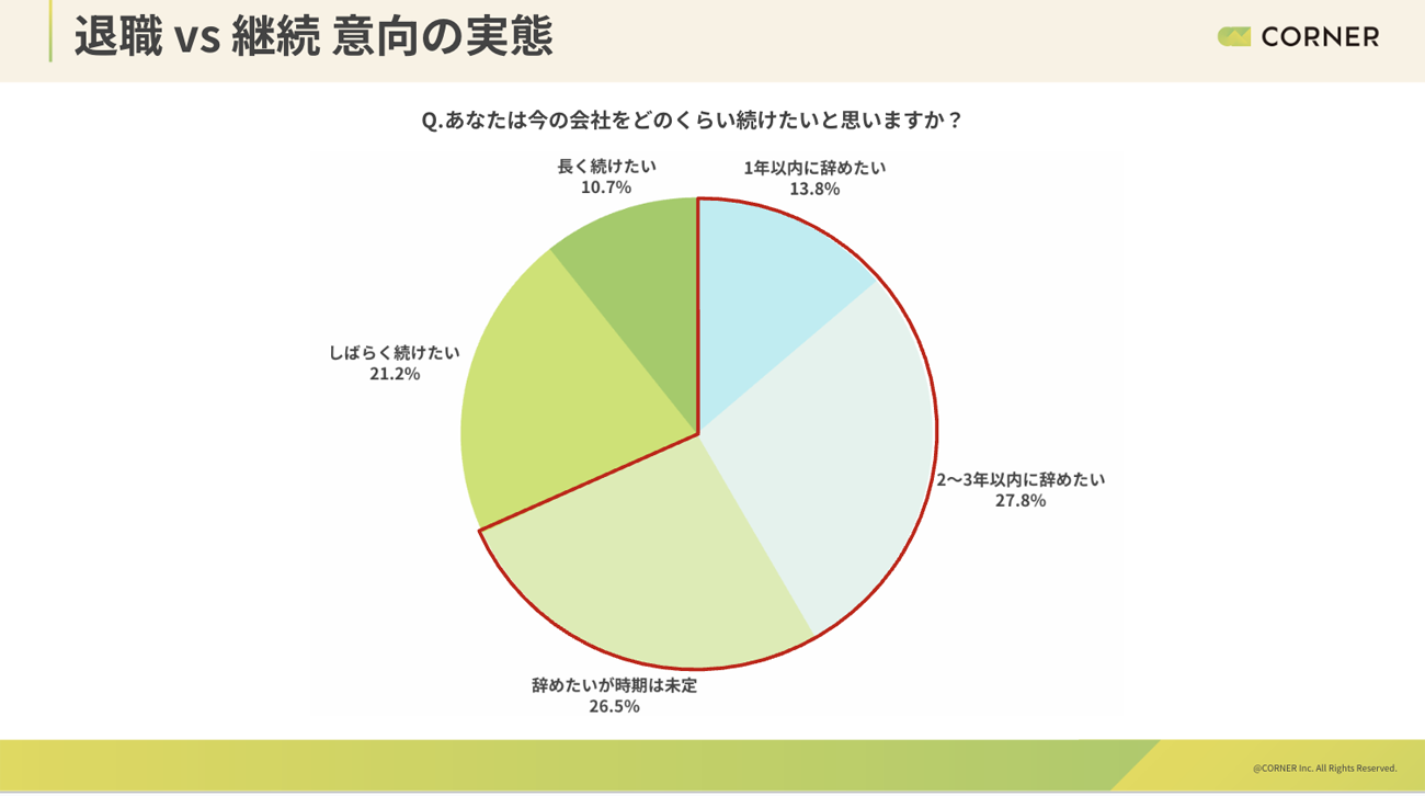 コーナーは、入社1〜3年めのZ世代(退職予定が決まっている人を除く)514名を対象に、「継続・退職意向」に関する調査を実施した。
