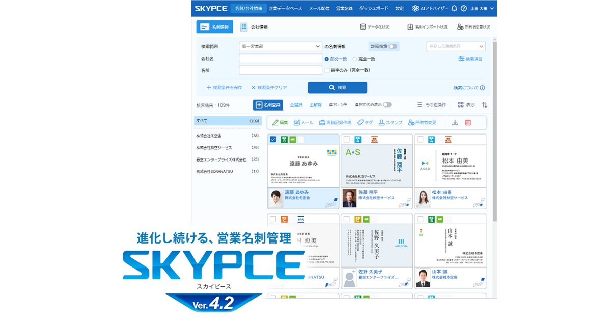 Skyは、営業名刺管理「SKYPCE Ver.4.2」(スカイピース バージョン4.2)を開発、販売を開始した。