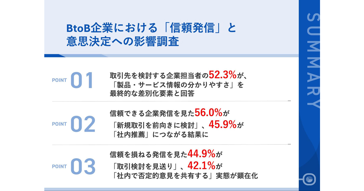 信頼できる企業発信により、約6割が「新規取引・発注を前向きに検討する」行動にリンク