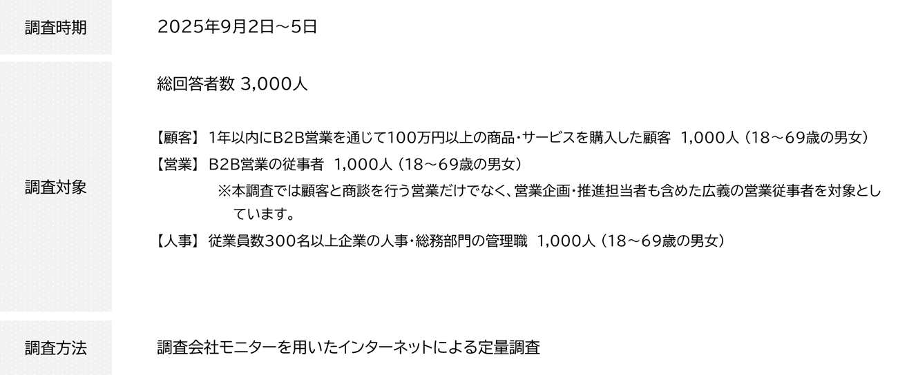 パーソル総合研究所ラーニング事業本部は、BtoBの顧客、営業、人事、各1,000人を対象とした「営業実態調査 2025~“アカウント営業”の生産性、その鍵は『質』にある~」を発表した。