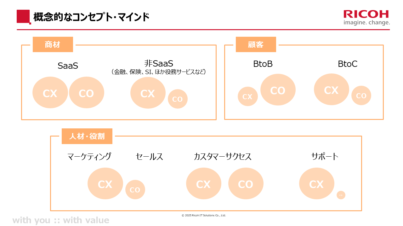 ※「CS」=Customer Success、「CX」=Customer Experience、「CO」=Customer Outcome