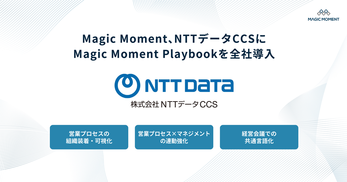 Magic Momentは、提供するAIセールスプラットフォーム「Magic Moment Playbook」(以下、Playbook)がNTTデータCCSの全社に導入されたことを発表した。