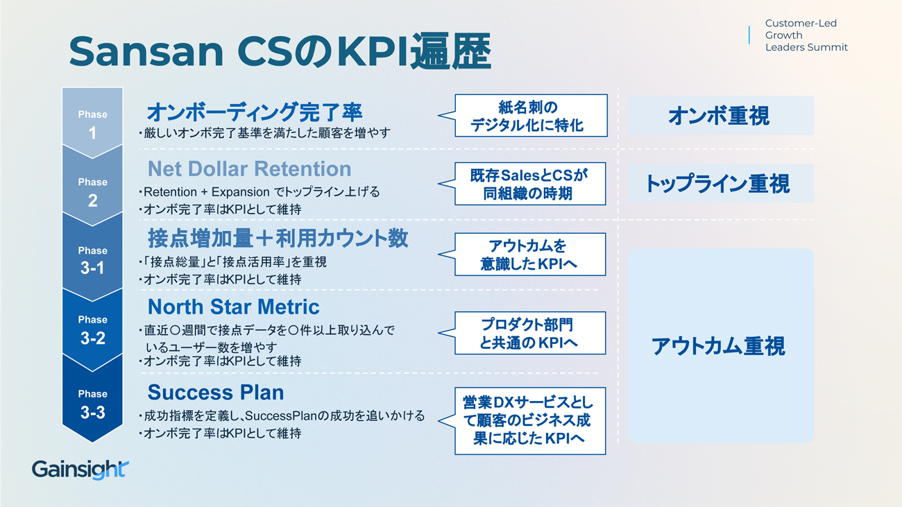 続いて話題は、SaaS業界の雄、Sansanの事例へと移る。2007年のサービス開始以来、顧客の事業成長にコミットしてきた同社。2018年には国内でいち早くGainsightを導入するなど、カスタマーサクセスの先進企業としても知られる。