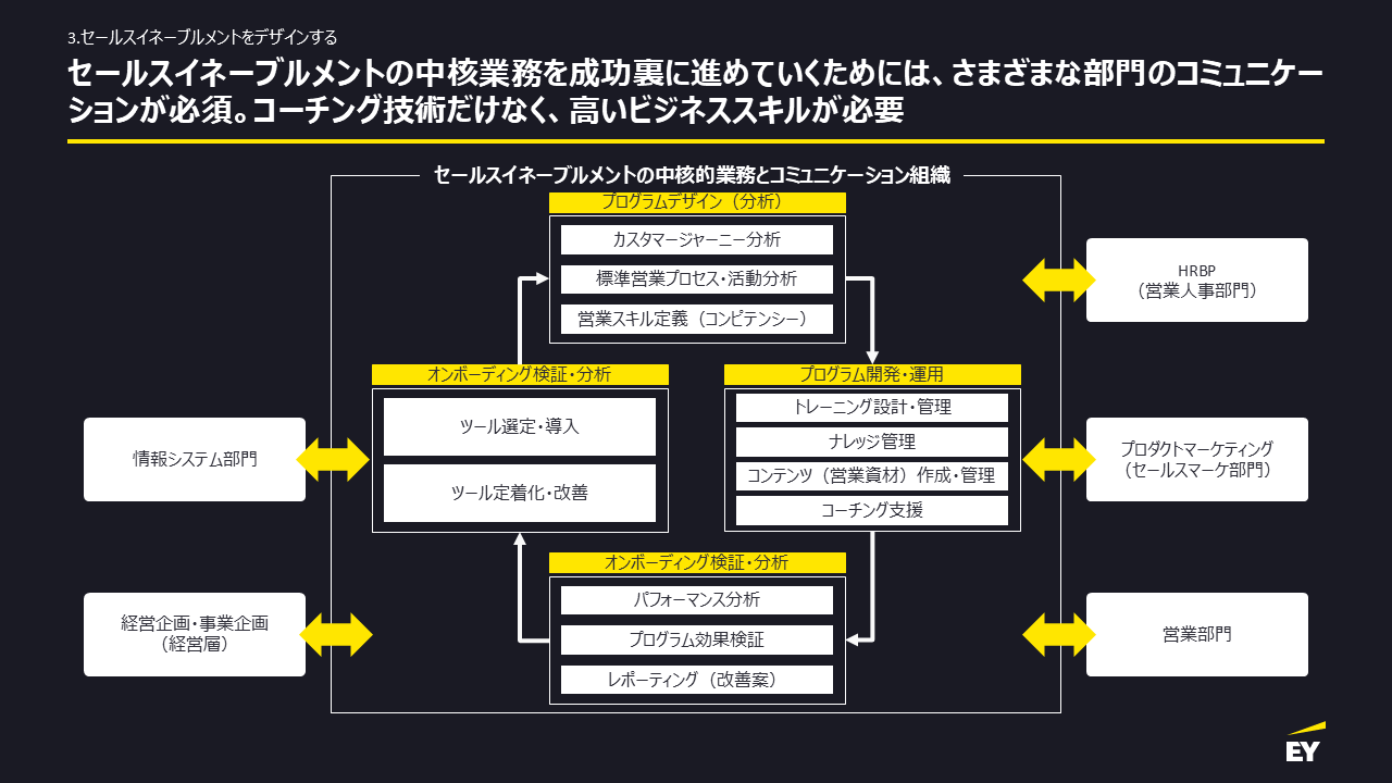 組織に7つの専門要件を備えて有機的に結びつけ、現場の変化を捉えてPDCAを回し続ける体制を構築できるか。これが、セールスイネーブルメントの効果を左右します。人材不足の時代だからこそ、この包括的なデザイン能力が、企業の収益成長を実現する鍵となるでしょう。