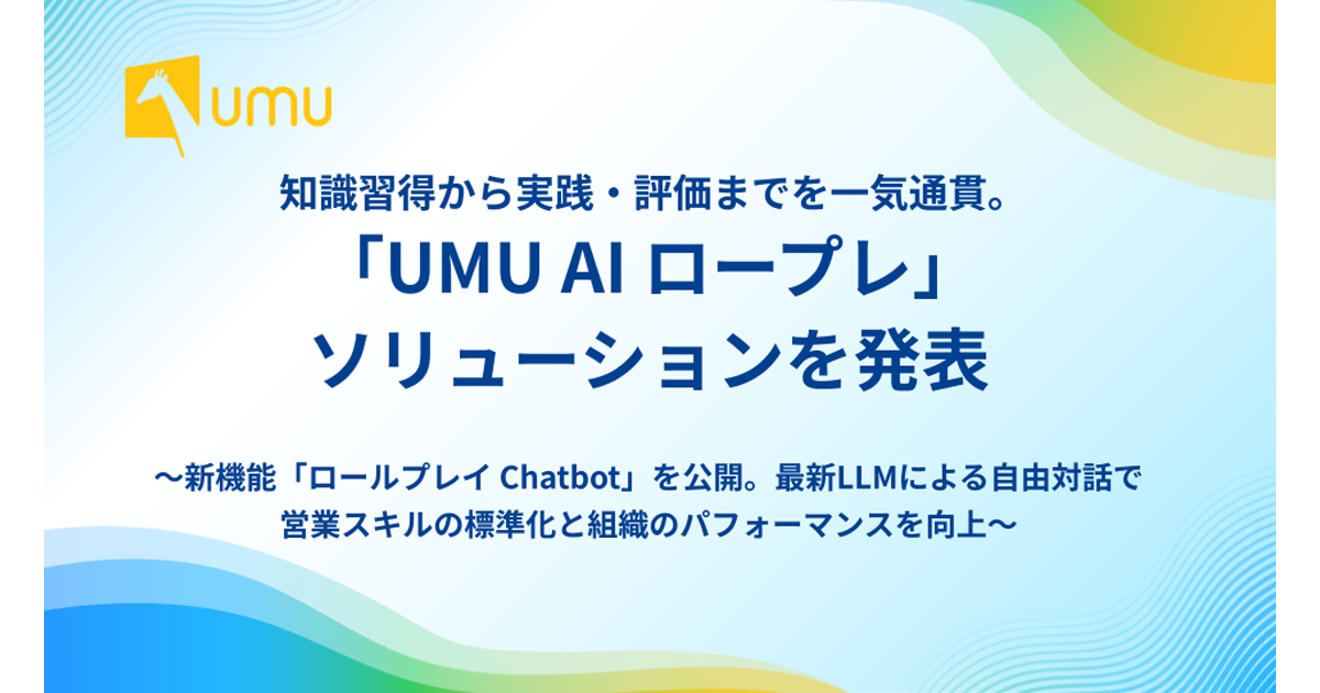 AI活用学習プラットフォーム「UMU(ユーム)」を展開するユームテクノロジージャパンは、営業組織のパフォーマンスを最大化する新ソリューション「UMU AIロープレ」を発表した。
