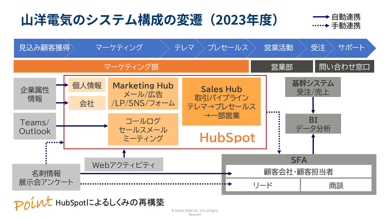 小峯 以前はMAとSFAがバラバラで、さらに一部の活動はExcel管理という状態でした。システムをまたぐたびに、お客様の「温度感」という重要な情報が欠落していたのです。そこで、2023年にHubSpotを導入し、マーケティングからプレセールス、営業活動までをワンプラットフォームに統合しました。
