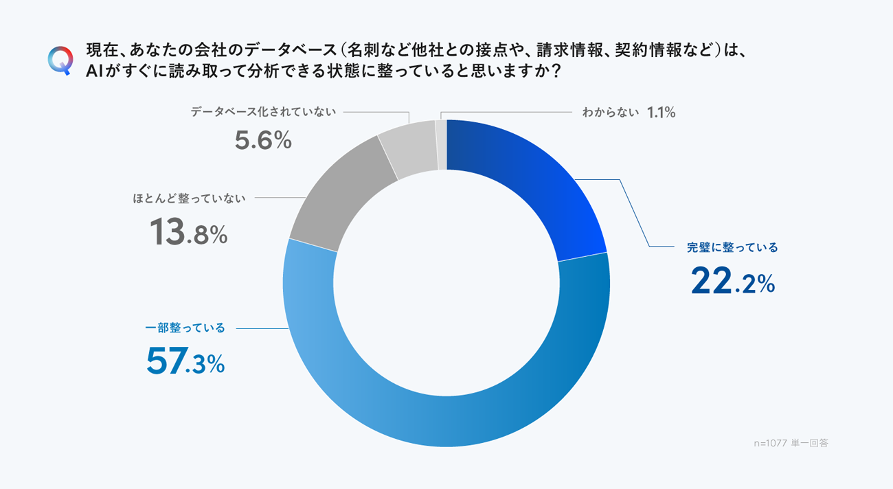 一方で、社内のデータベースが「AIがすぐに読み取って分析できる状態に完璧に整っている」と回答した人は22.2%だった。