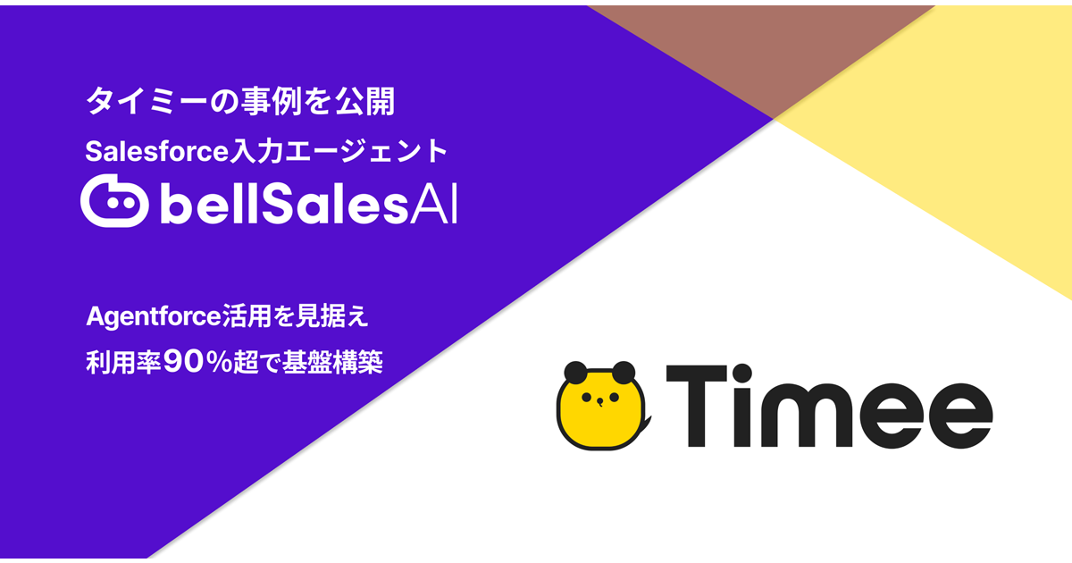 ベルフェイスは、開発・提供するSalesforce入力エージェント「bellSalesAI(ベルセールスエーアイ)」について、タイミーの導入事例を公開した。