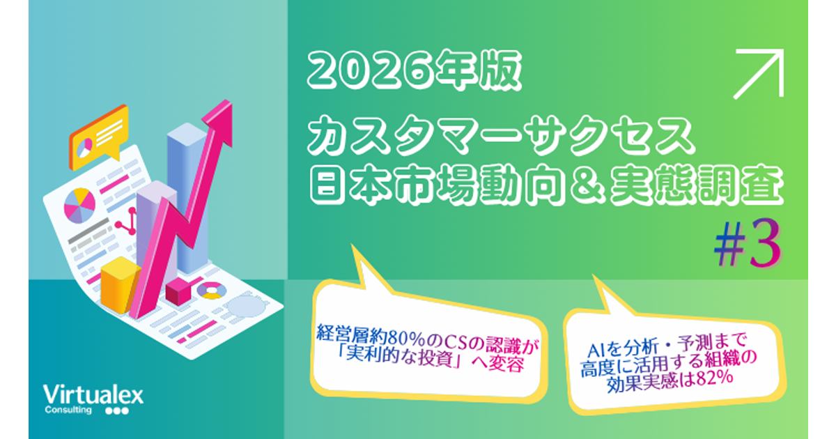 バーチャレクスグループのバーチャレクス・コンサルティング(以下、バーチャレクス)は、「カスタマーサクセス日本市場動向&実態調査」を実施し、前回の第二弾に引き続き2026年版第三弾の結果を取りまとめた。本調査では、カスタマーサクセスの経営基盤化の進展と、AI活用の深度が成果を分ける実態が明らかになった。