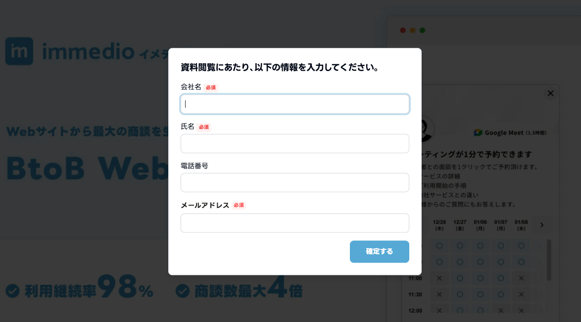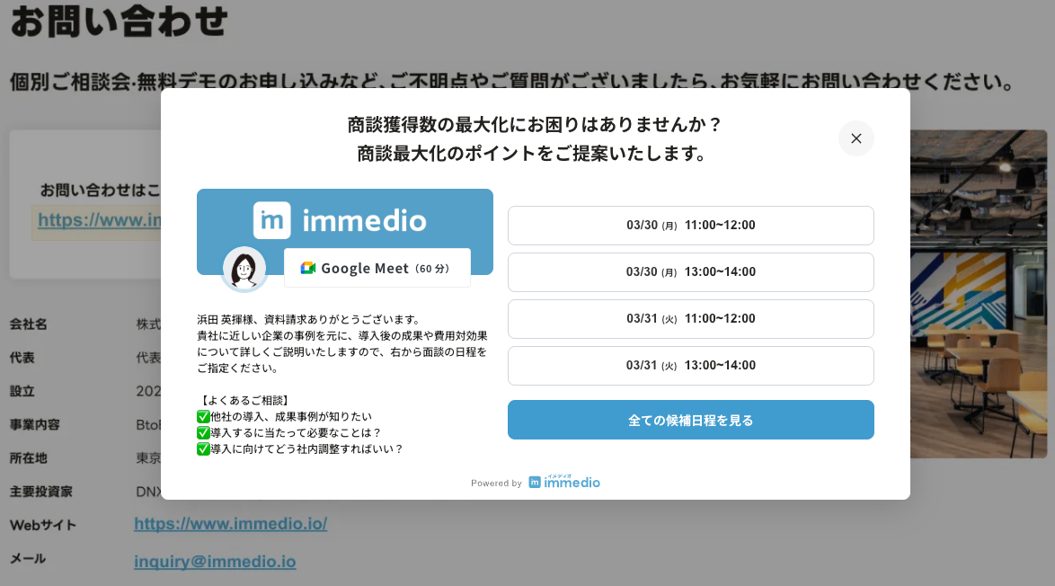 immedioは、提供するAIインサイドセールス「immedio(イメディオ)」が、資料や動画を閲覧中の顧客に対してその場でアプローチできる「アンケート機能」をimmedio Boxにてリリースしたことを発表した。