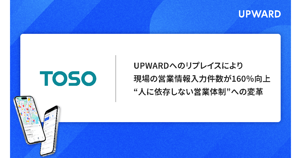 UPWARDは、トーソーが営業支援サービス「UPWARD」を導入したことを発表した。