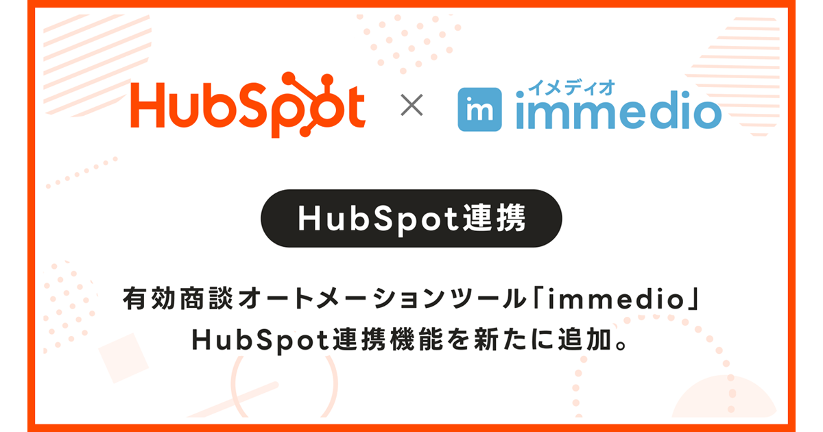 immedioは、有効商談オートメーションツール「immedio」において、HubSpotとの連携機能を新たに追加した。