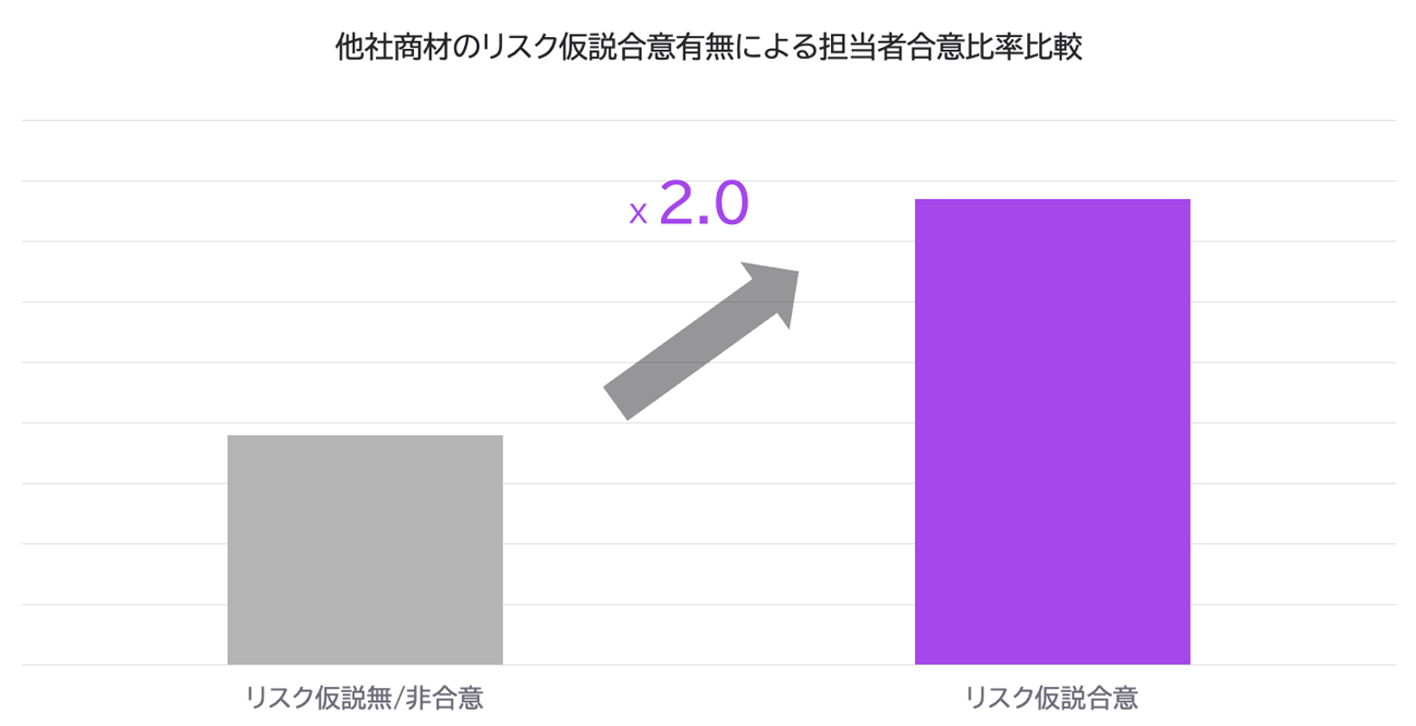 Bring Outを導入しているIT業界のパッケージセールス商談を解析した結果、担当者の導入合意を得られた商談は、得られなかった商談に対し、他社商材導入時のリスクに関する仮説を2.0倍多く伝えていることが明らかとなった。