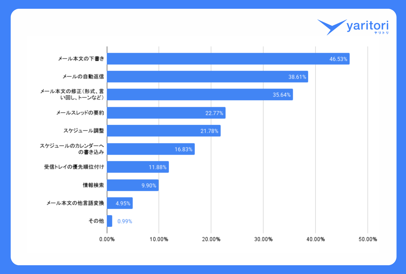 AIのメール対応、5割が「活用しない」、3割が「使い方がわからない」/yaritori調べ