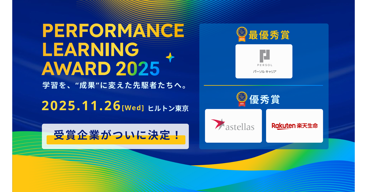 本アワードは、単なる知識のインプットに留まらず、学習を企業の業績や経営インパクトに直結させた優れた取り組みを表彰する、パフォーマンスラーニングに特化したアワード。厳正なる一次審査を経て選出されたファイナリスト16社の中から、外部審査員による二次審査を経て、最優秀賞、優秀賞および各部門賞(パフォーマンスラーニングデザイン賞、ビジネスインパクト賞、AIトランスフォーメーション賞、スケーラビリティー賞)の受賞者が決定した。