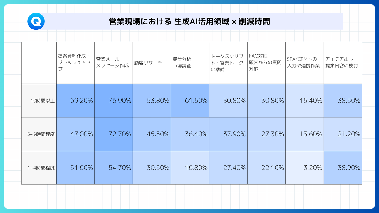 メールや資料作成といった効率化領域を超え、営業戦略や顧客理解といった領域への期待が高まっていることがわかった。