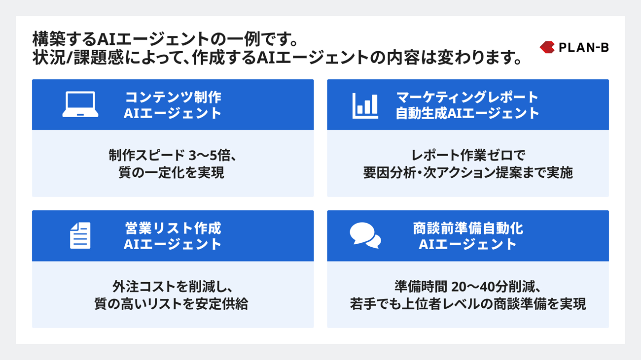 PLAN-Bは、セールス・マーケティングチームの業務プロセスをAIエージェント前提で再設計し、属人化した業務を自動で回るオペレーションへ変革することを目的とした「AIオペレーション構築サービス」の提供を開始した。