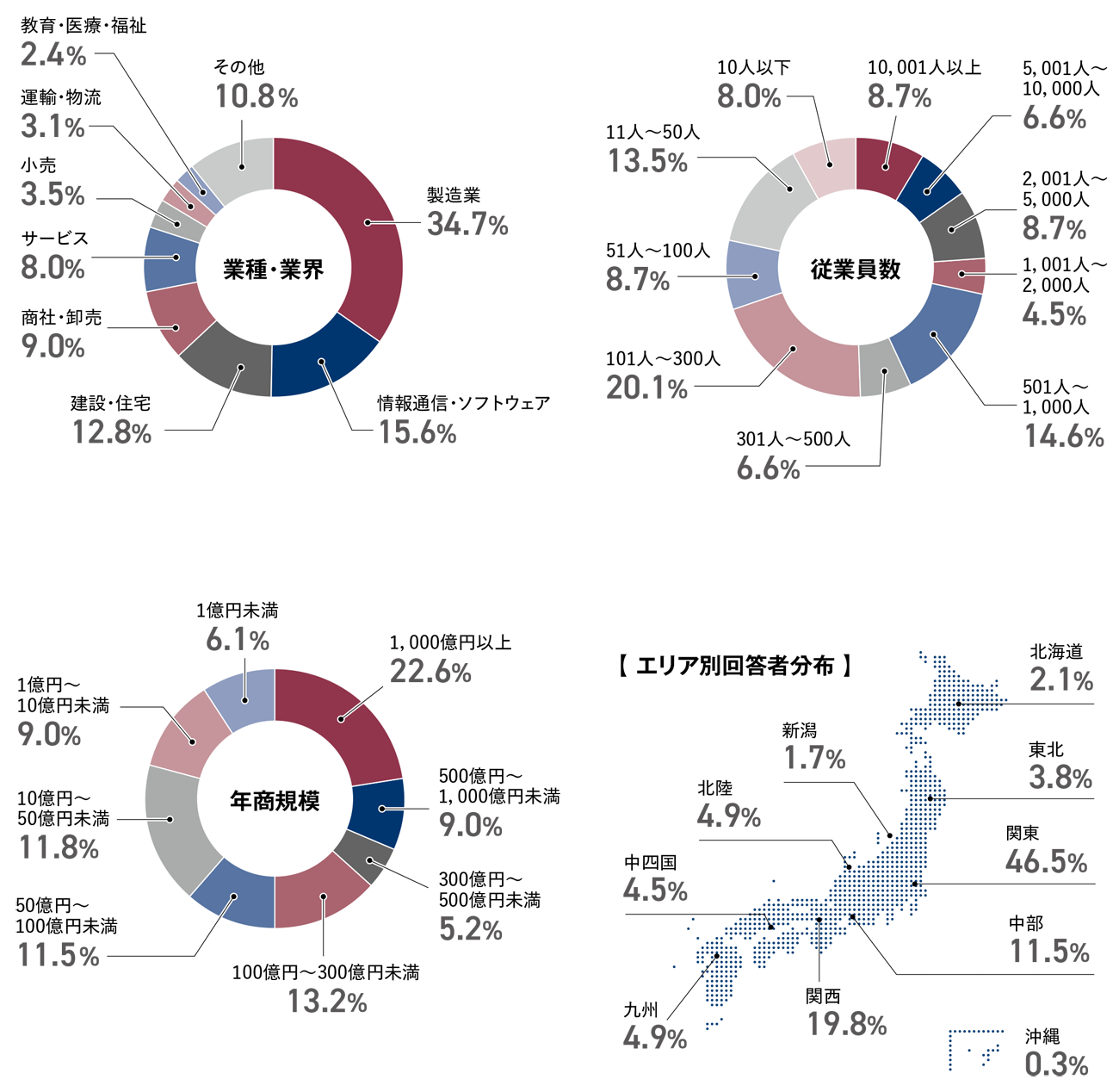 ※本調査では、アンケートに回答した企業において、従業員規模が2000人超を大企業、300人超~2000人以下の企業を中堅企業、300人以下の企業を中小企業として分類し、分析を行った