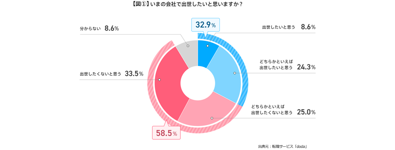パーソルキャリアが運営する転職サービス「doda(デューダ)」は、20~59歳のビジネスパーソン15,000人を対象に、出世の希望やその理由を調査し、その結果を発表した。
