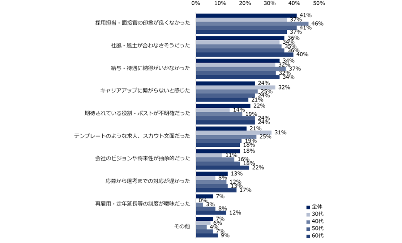 • 会社の文化、社員の雰囲気が自身の価値観と反するものであったと感じたから(50代男性)