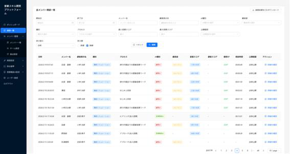 全社員の実施状況、録画データ、採点ランキング、成長推移を一括管理。データに基づいた的確なマネジメントを可能にし、組織全体の営業スキルの底上げを支援する。