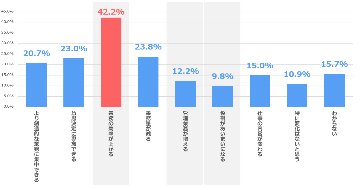 一方で、「管理業務が増える(12.2%)」「役割があいまいになる(9.8%)」といった懸念も一定数見られた。