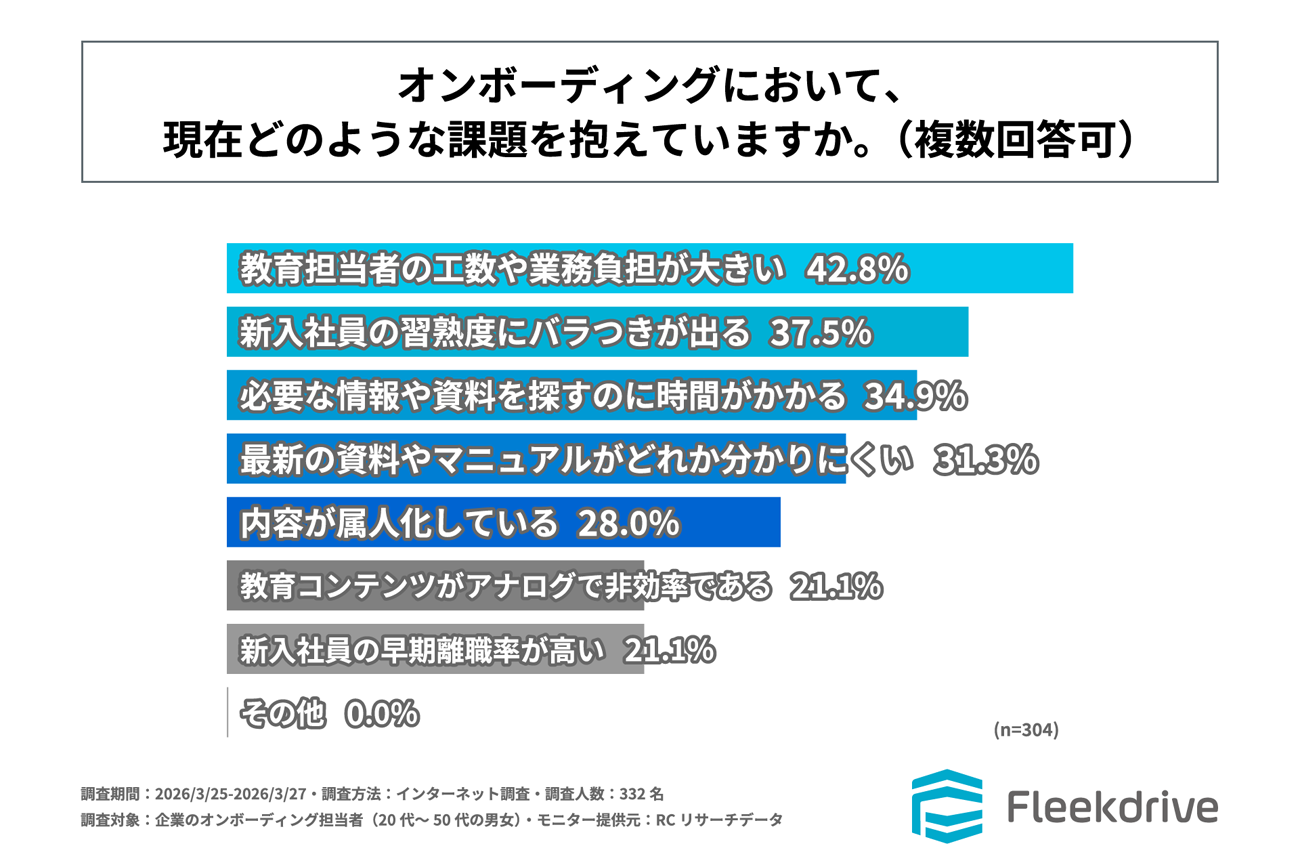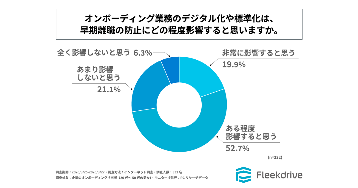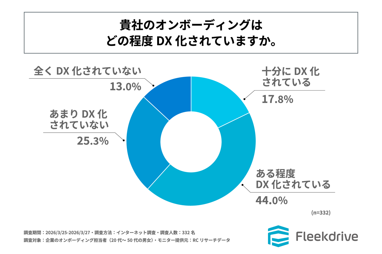 Fleekdriveは、企業のオンボーディング担当者(20代~50代の男女)を対象に「オンボーディングのDX実態に関する調査」を実施した。