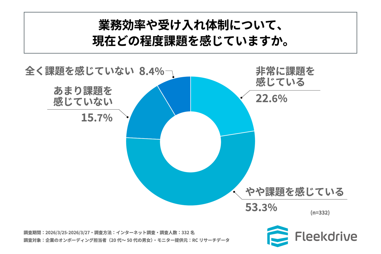 企業のオンボーディング担当者の75%以上が、業務効率や受け入れ体制について、現在課題を感じている