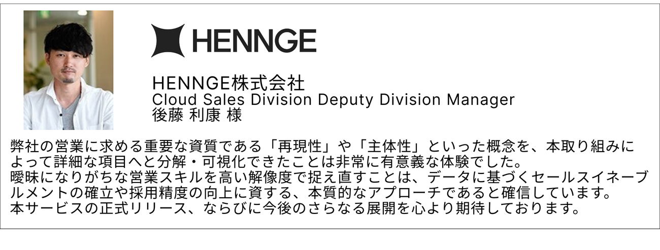 この事前のPoCおよび検証プロジェクトに参画し、「セールスバイタルシート」などの有用性を評価した企業のエンドースメントは次のとおり。