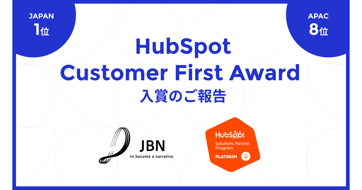 JBNは、HubSpotが選出するSolutions Partner Impact Awardsにおいて、「Customer First in Japan 2025」(日本で第1位)を受賞したことを発表した。なお、アジア太平洋地域でも第8位に選出されている。